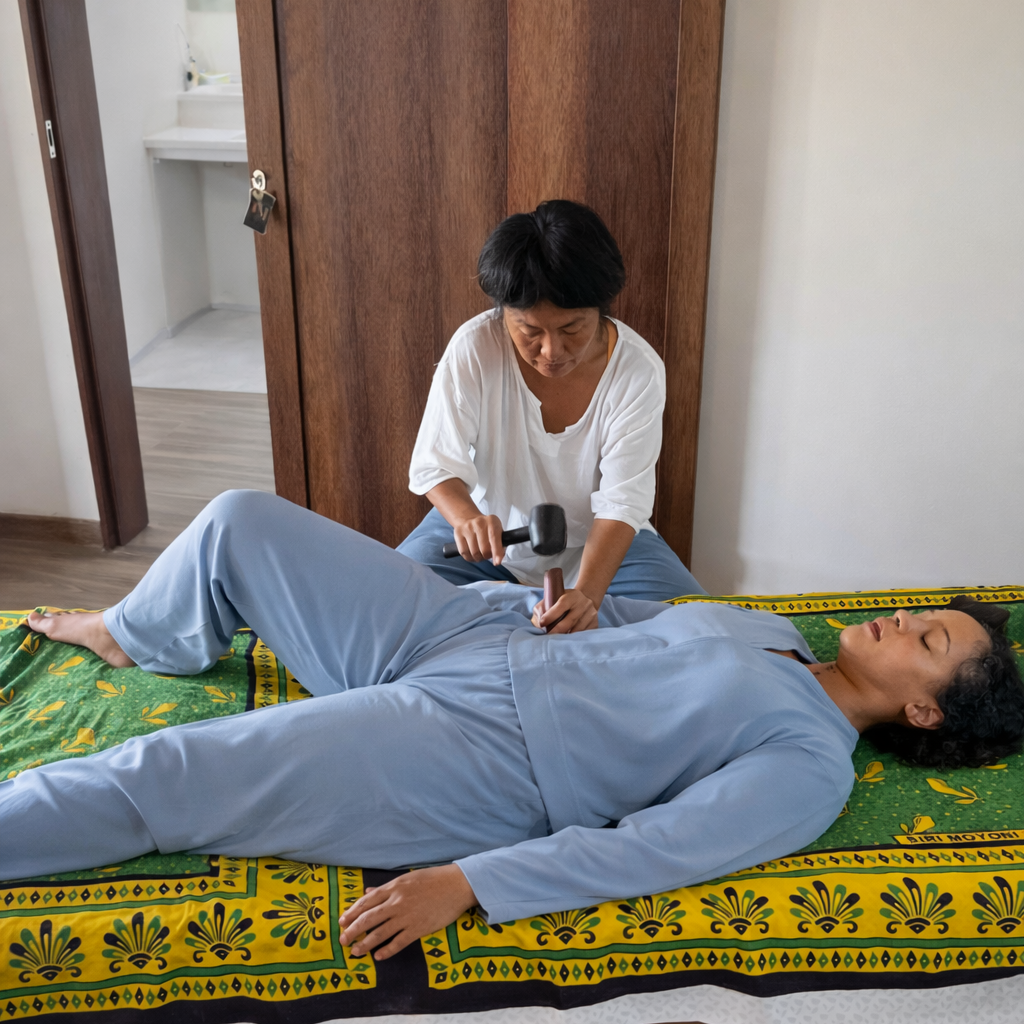 Tok Sen is a traditional healing practice in Thailand where the practitioner taps and vibrates energy along the body’s meridians to help release muscular/fascial tension and improve circulation. This practice is believed to alleviate physical and emotional blockages, and promote overall health and well-being.