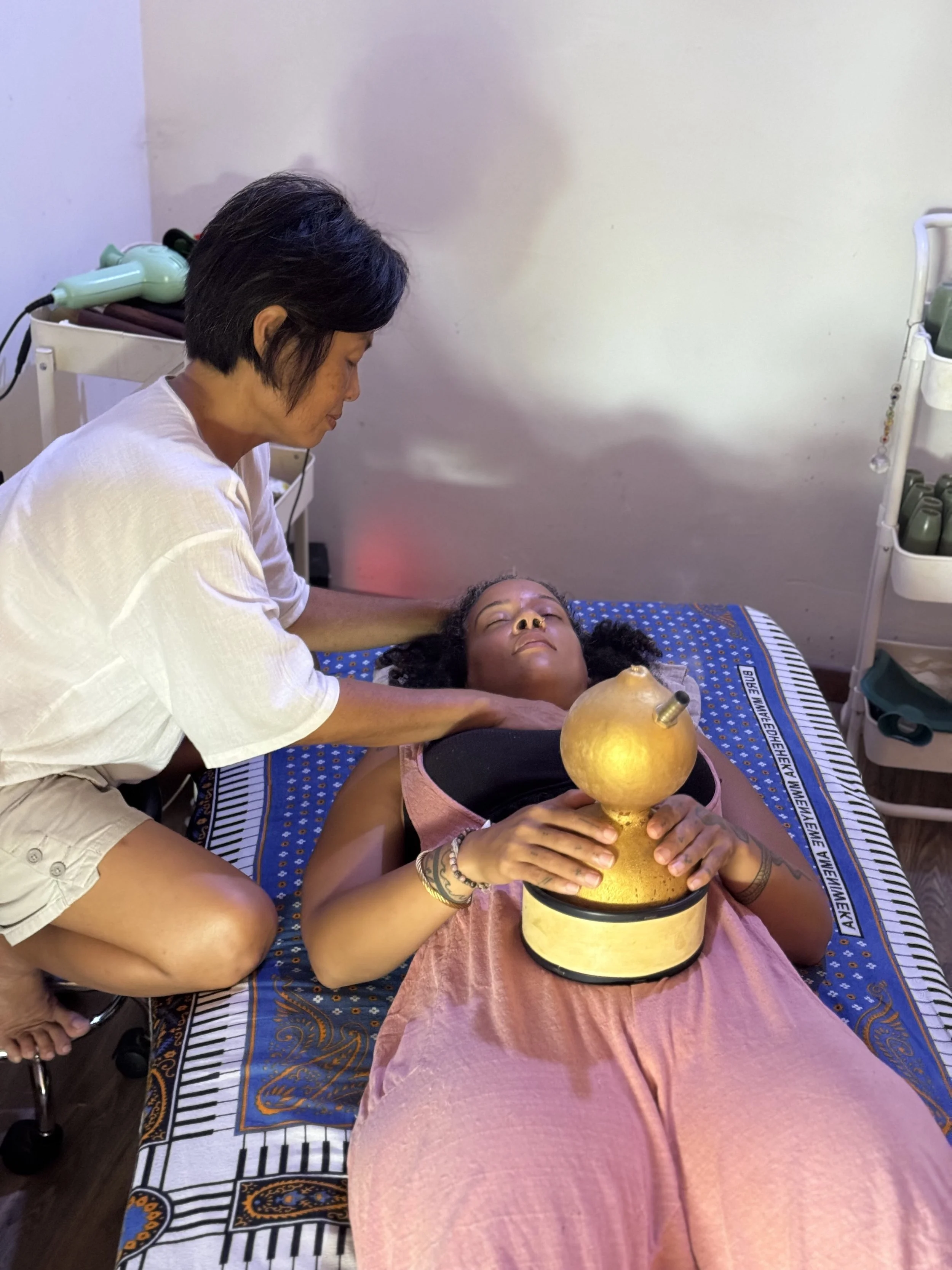 As a trained Traditional Chinese Medicine practitioner, Cheng uses a focused, specialist approach rather than one-size-fits-all care. Each session begins with careful assessment and attention to detail, allowing her to tailor treatments to the specific patterns, pain points, and needs of each individual. Her work is thoughtful and precise, with the intention that clients feel measurably better in their bodies.